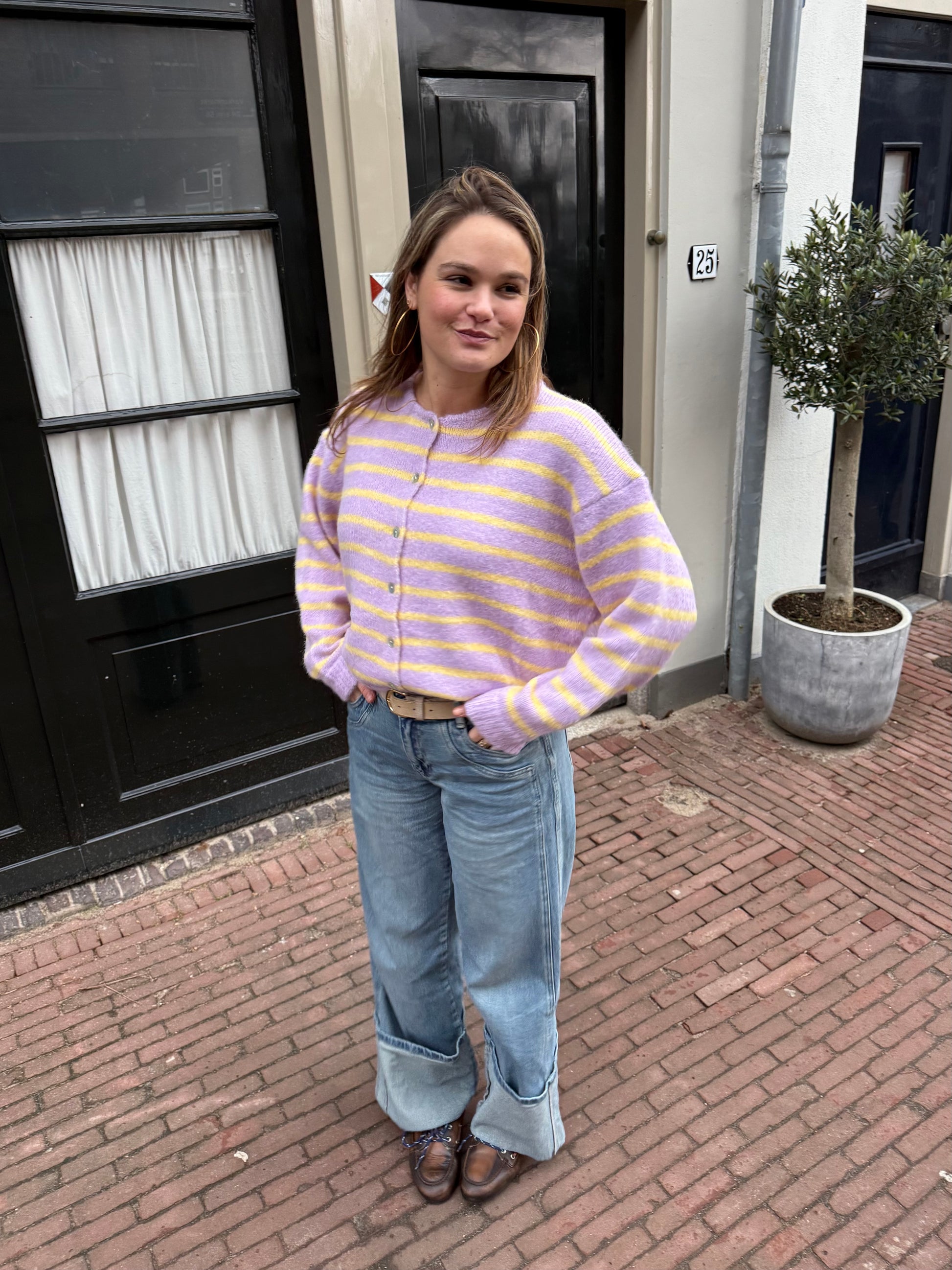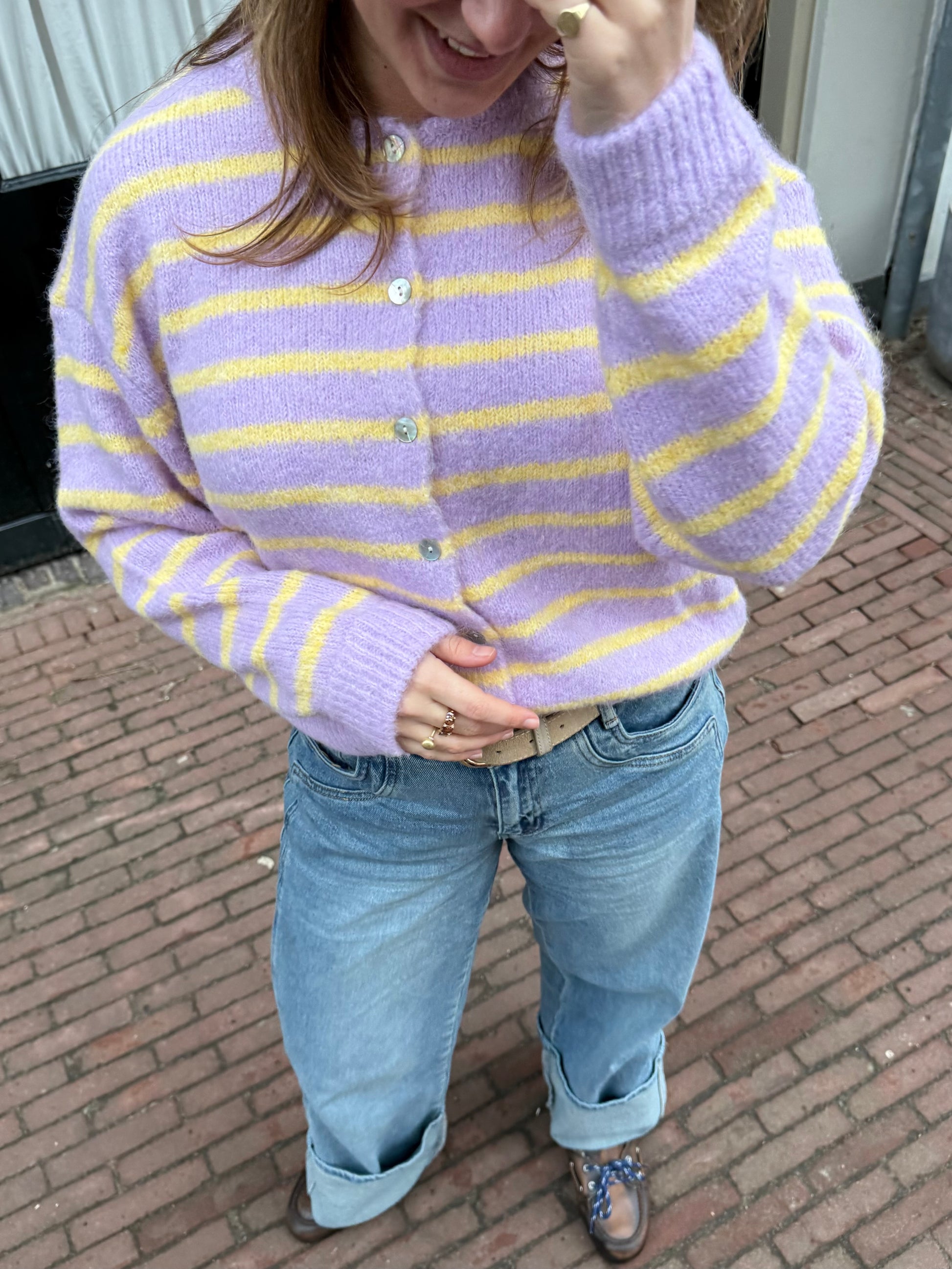 Gestreept vestje met contrasterende kleuren. Ook leuk om een blouse of lace top onder te dragen.