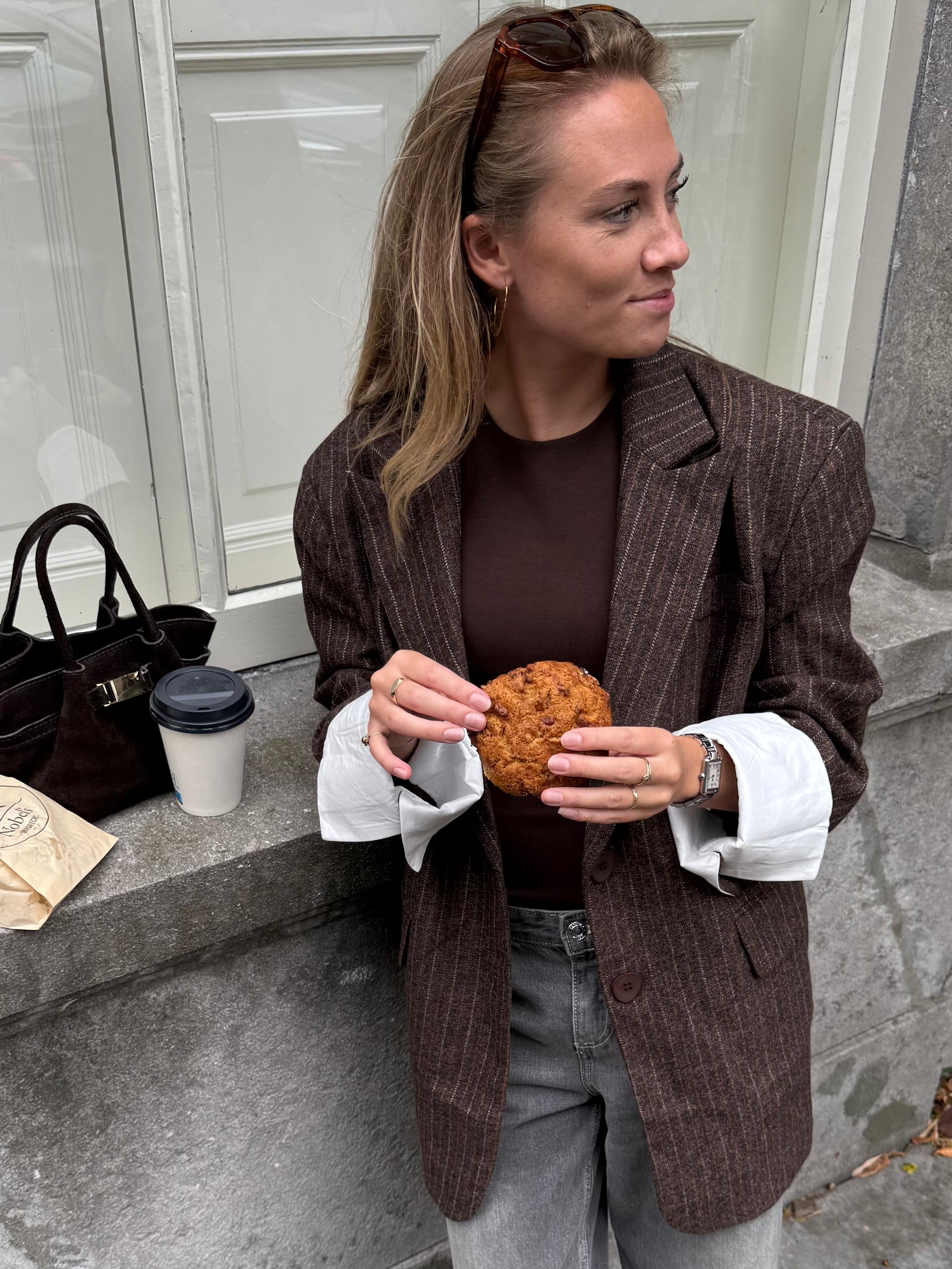 Prachtige blazer, klassiek maar net even anders door het detail bij de mouw. Mooie witte omslag.