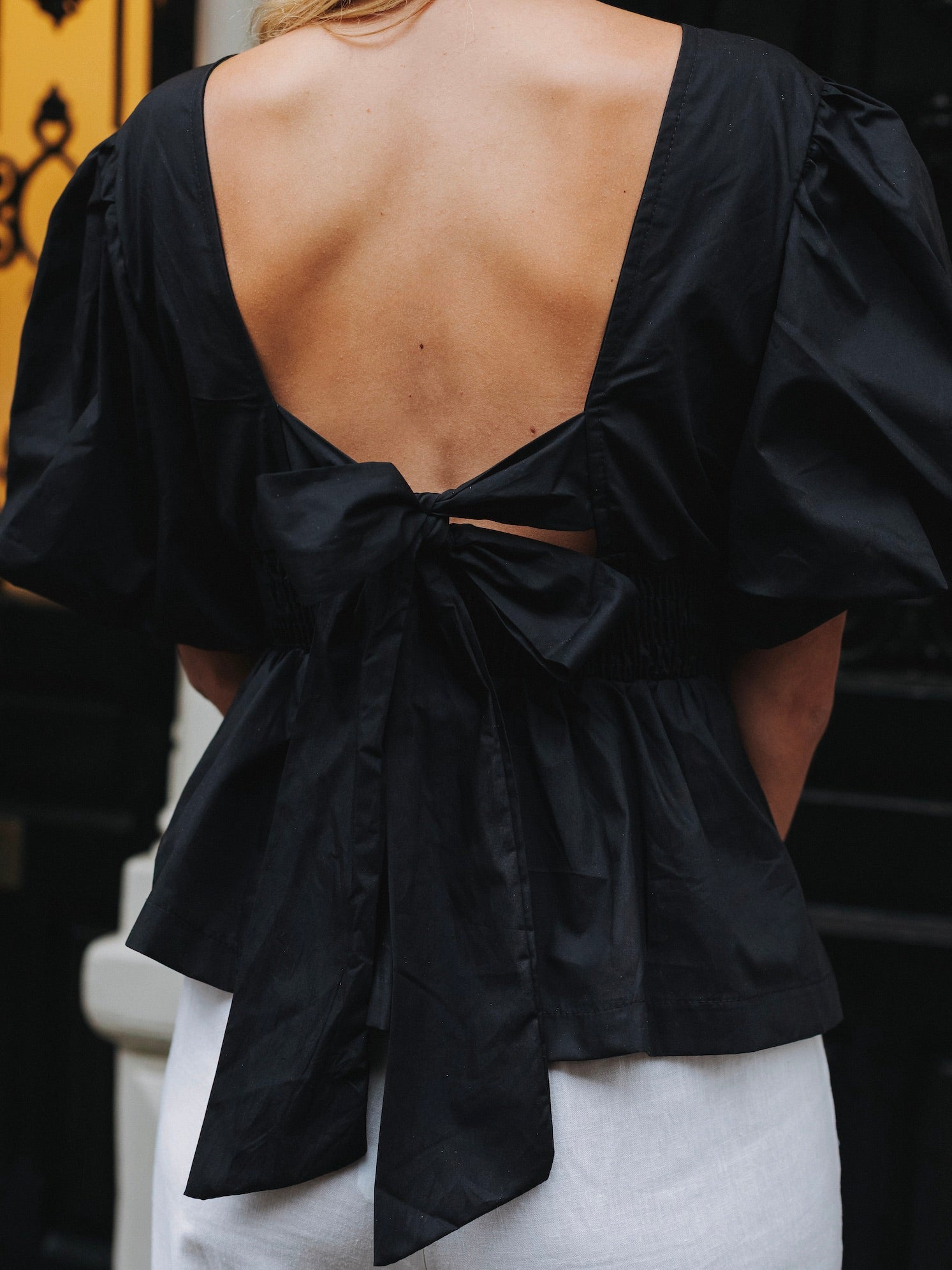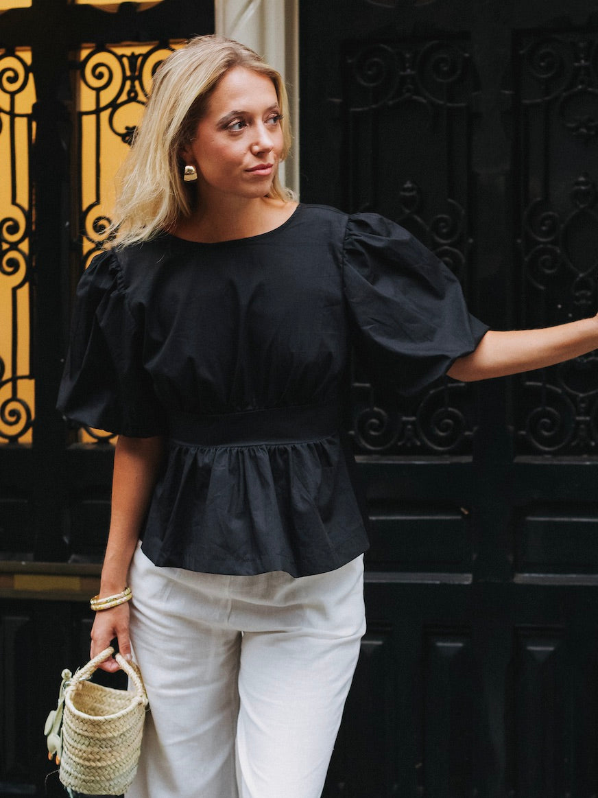 Dit is een echte parel! De pofmouwen en aan de achterkant de strik maken de top super uniek.
