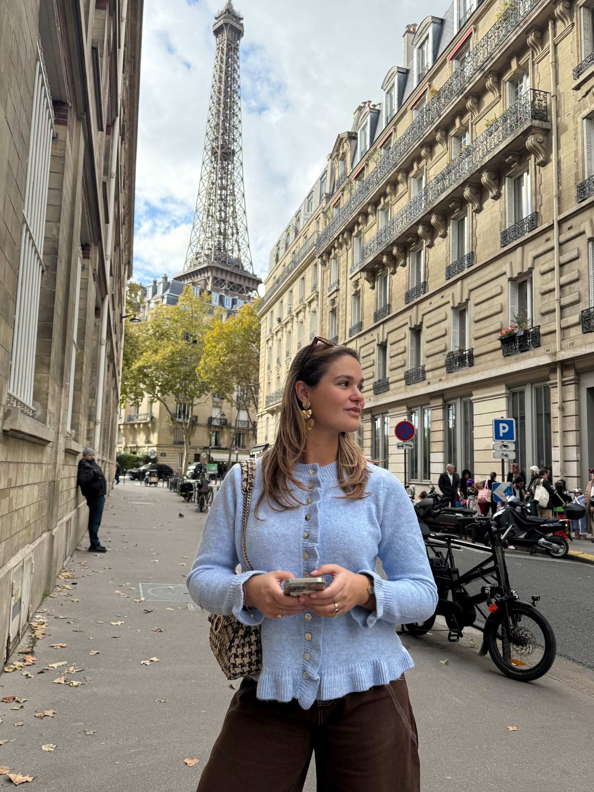 Vestje met knoopjes, ruffle afwerkingen bij de mouwen en knoopsluiting. Valt op maat tussen XS t/m L.
