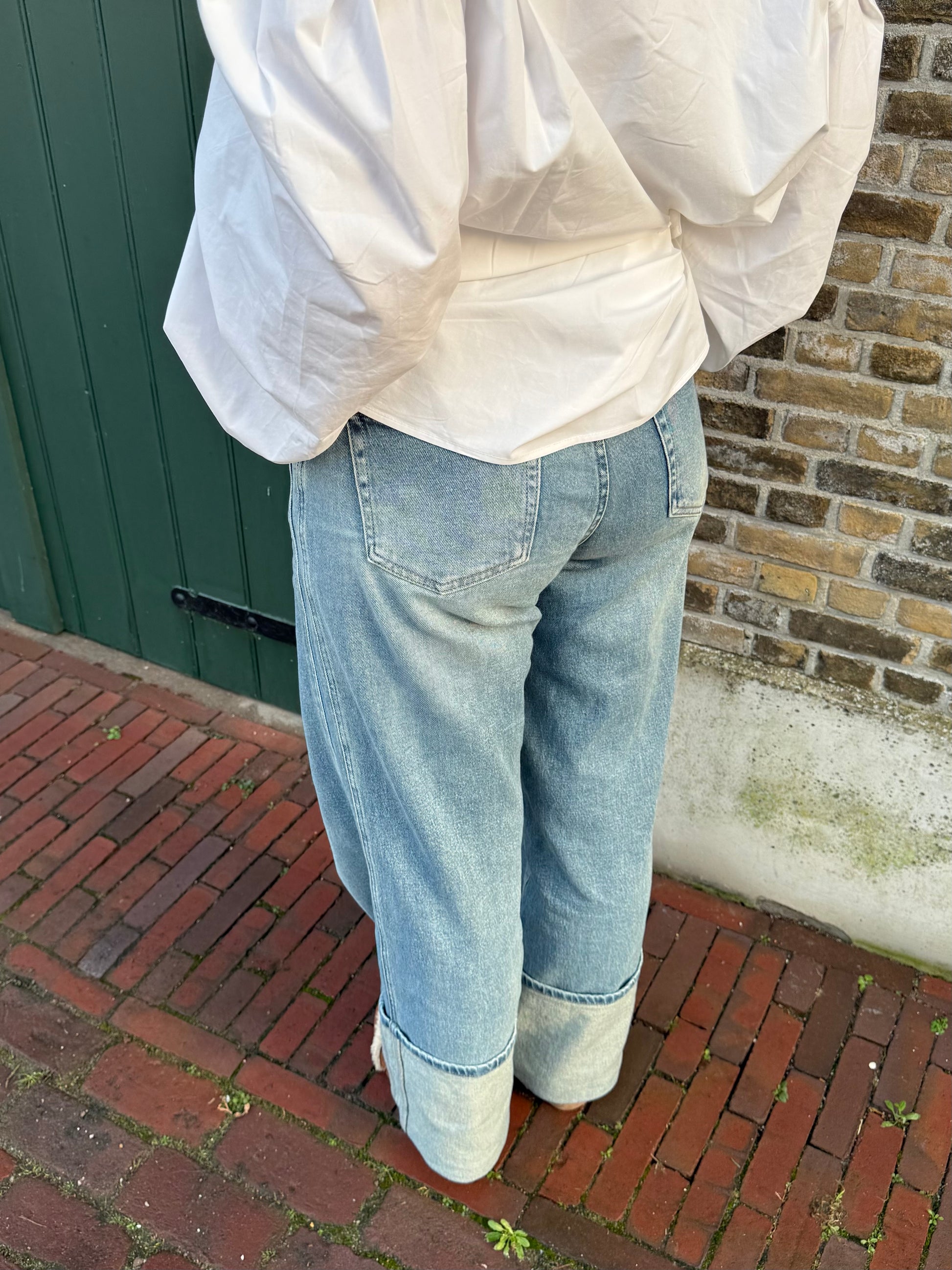 De June Jeans heeft hele toffe details, zoals de omslag pijpen en de toffe bies details. Aan de voor-en achterkant heb je zakken en er zit een lekkere stretch in! De broek valt op maat.