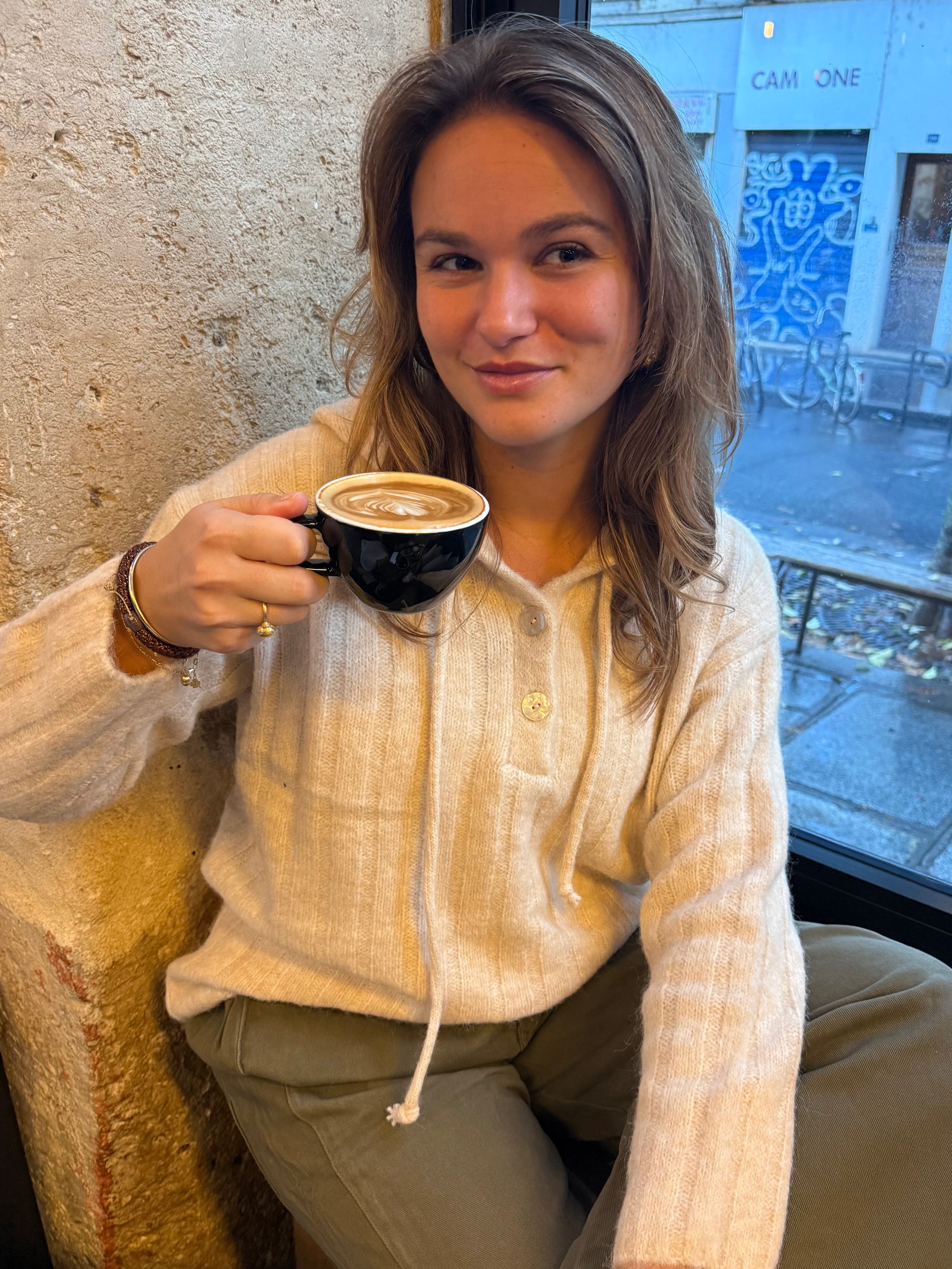 Trui met capuchon en koorden. Heerlijk voor de koudere dagen.