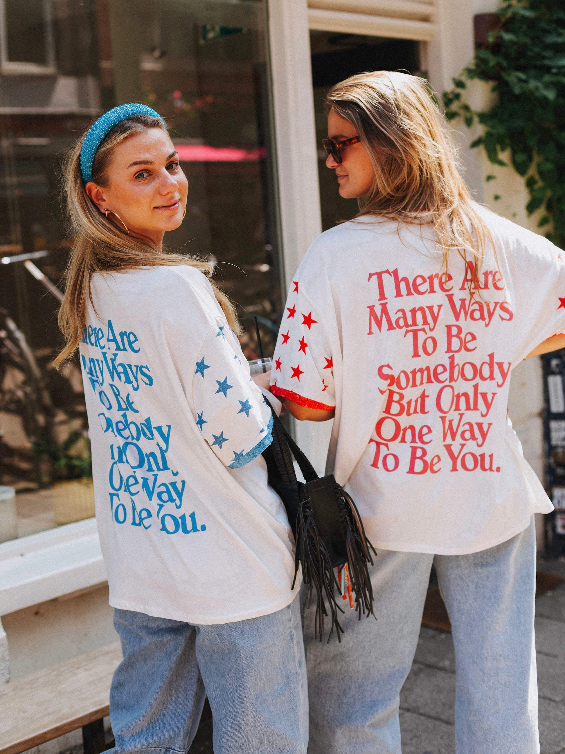 Statement T-shirt met sterren en tekst op de achterzijde. De tekst sluit volledig aan op waar Maison FAV voor staat! Het T-shirt valt voor een S/M oversized.
