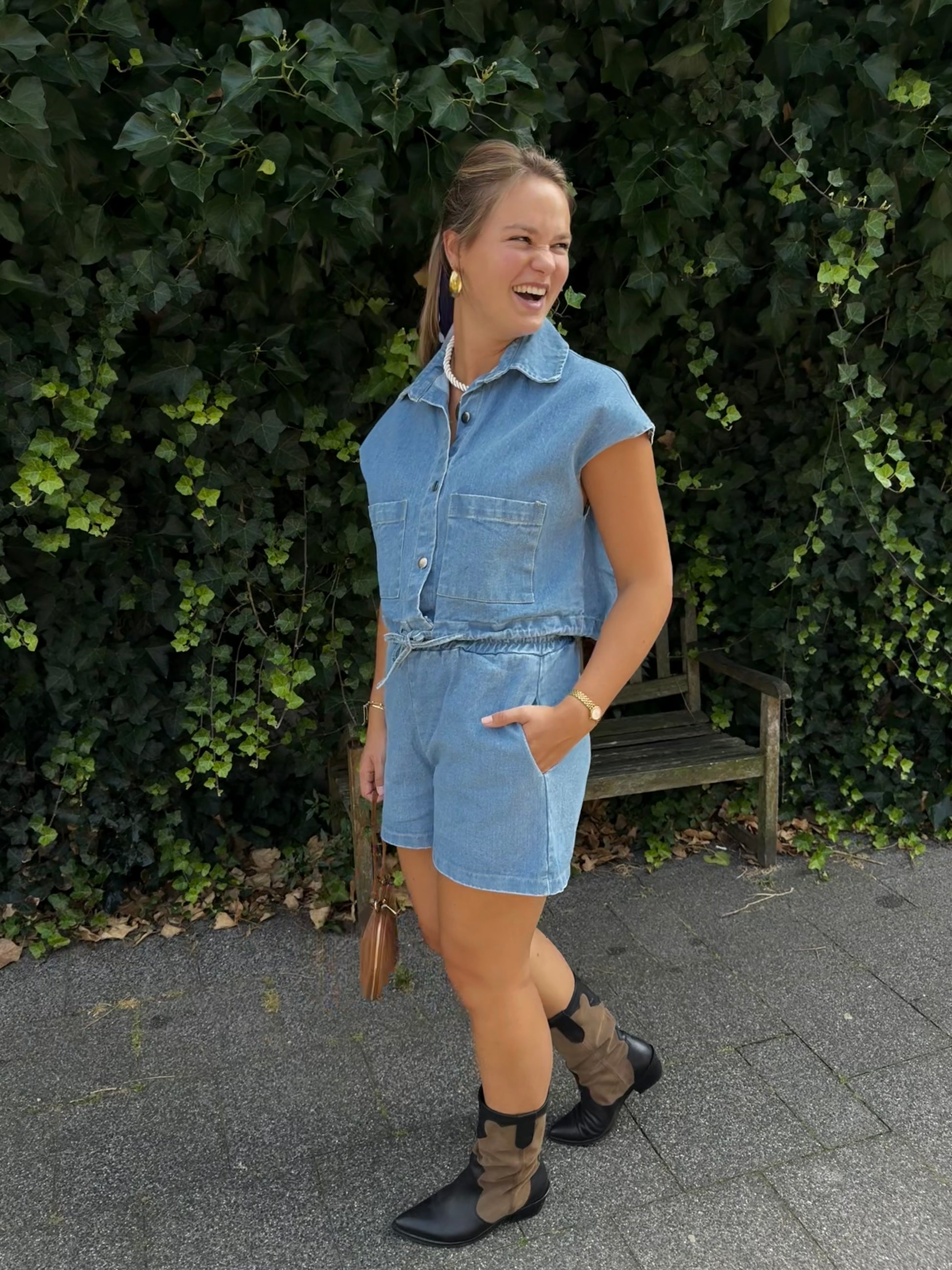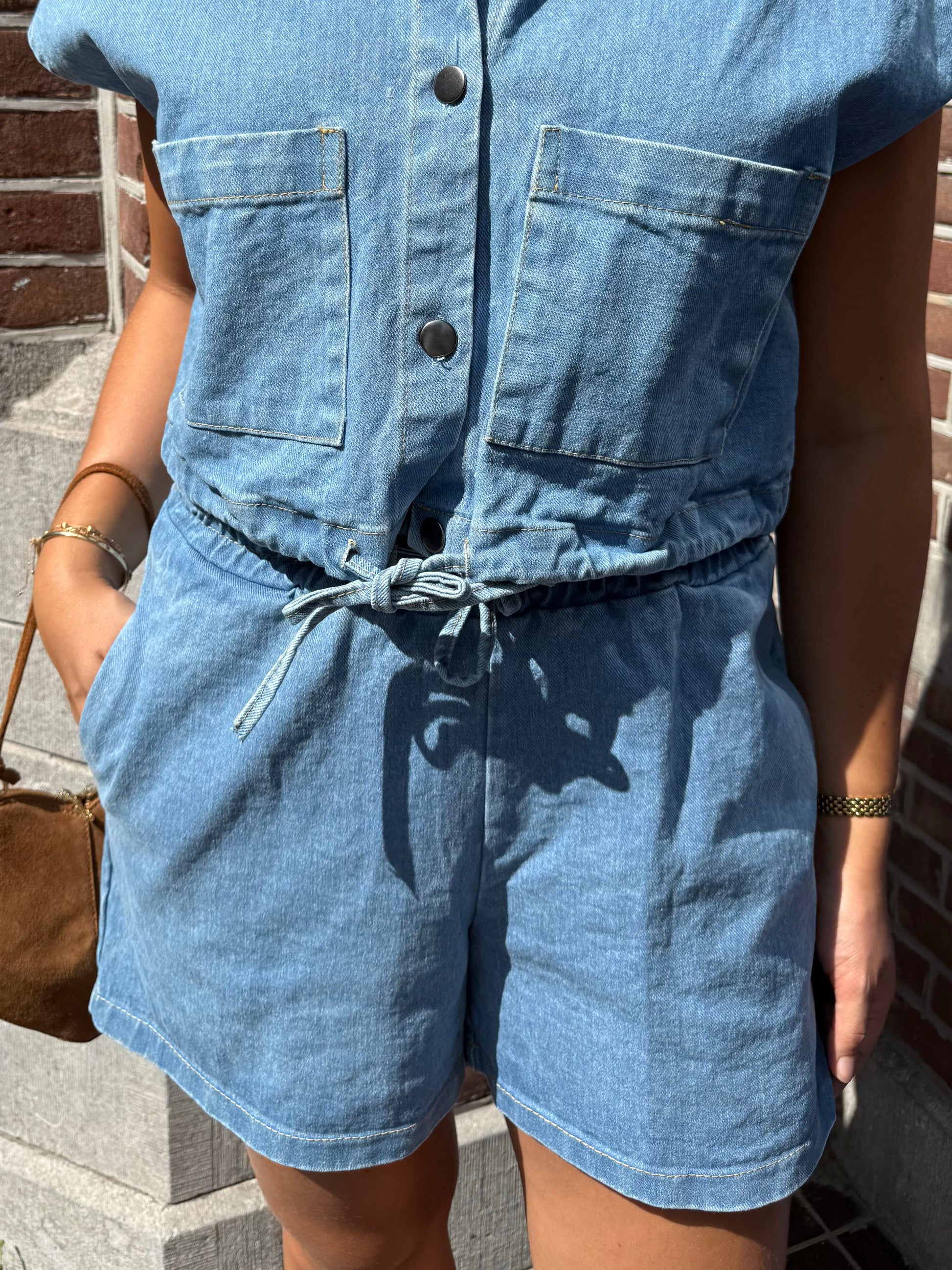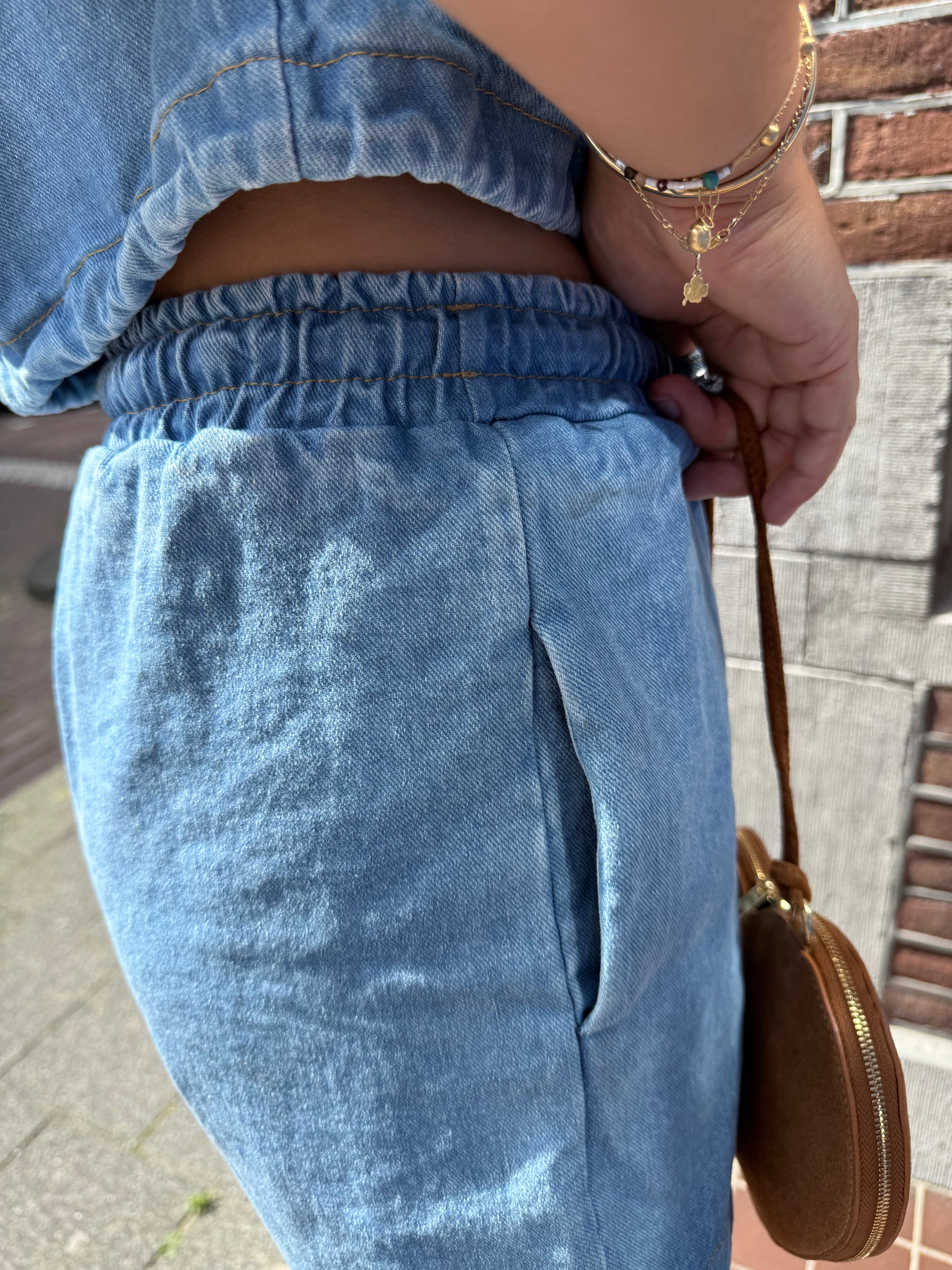 Co-ord setje, we houden ervan! Met de Tess Denim Top maakt het een enige set. Er zit elastiek in het broekje wat het lekker comfortabel maakt om te dragen. Een maat, draagbaar tussen maat XS tot M